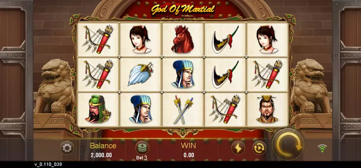 God Of Martial adalah slot video yang dirancang untuk membenamkan pemain dalam suasana pertarungan epik. Game ini umumnya mainkan pada konfigurasi 5 gulungan dan 3 baris, dengan 25 jalur pembayaran [1, 2]. Tema utama game ini berpusat pada seni bela diri dan pertempuran legendaris, seperti Pertempuran Tebing Merah. Menampilkan simbol-simbol seperti peralatan militer dan tokoh-tokoh sejarah [3]. Grafis yang tajam dan animasi yang luar biasa menciptakan suasana yang imersif dan penuh aksi.